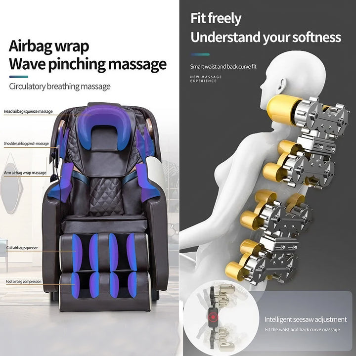 نظام وسائد هوائية متكامل: يغطي الكتفين، الذراعين، الوركين، الساقين، والقدمين، مع إمكانية ضبط مستويات الانكماش بثلاث درجات (خفيفة، متوسطة، قوية).