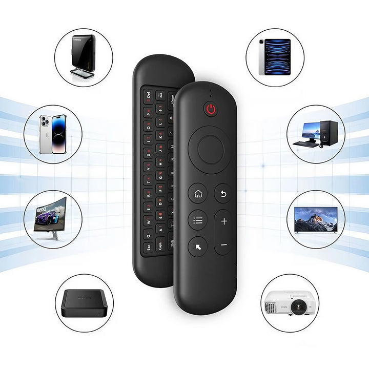 متعدد الاستخدامات، مما يجعله مثالي للتحكم في التلفزيون، جهاز العرض، أو الكمبيوتر الشخصي/التلفزيون، بفضل الاتصال اللاسلكي 2.4G RF وBluetooth V5.2 الذي يضمن التحكم دون انقطاع من مسافة تصل إلى 10 أمتار.
