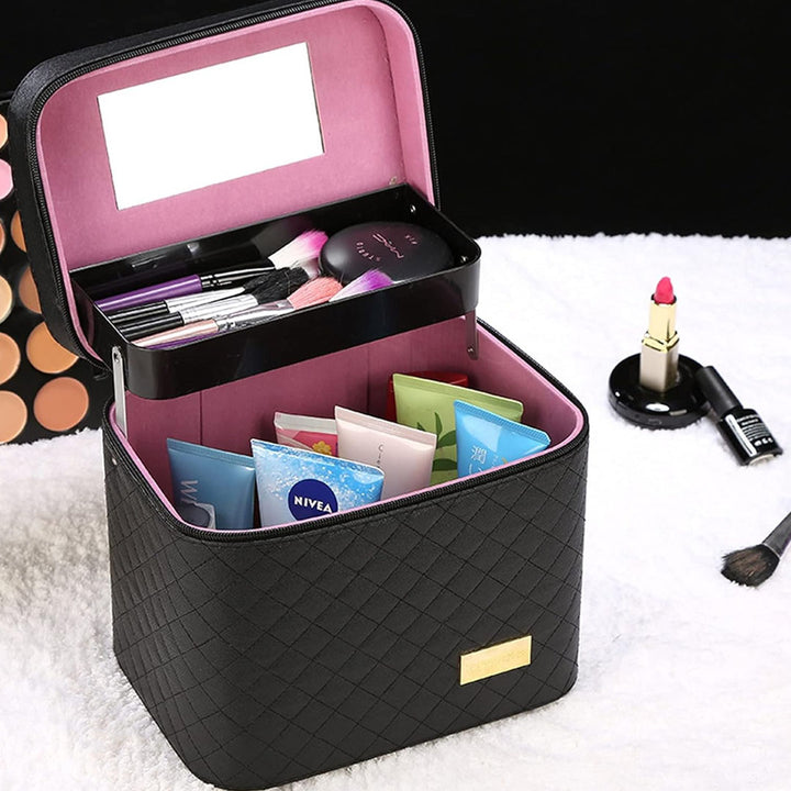 Spacious storage compartment with a movable inner drawer to keep all your beauty essentials organized.