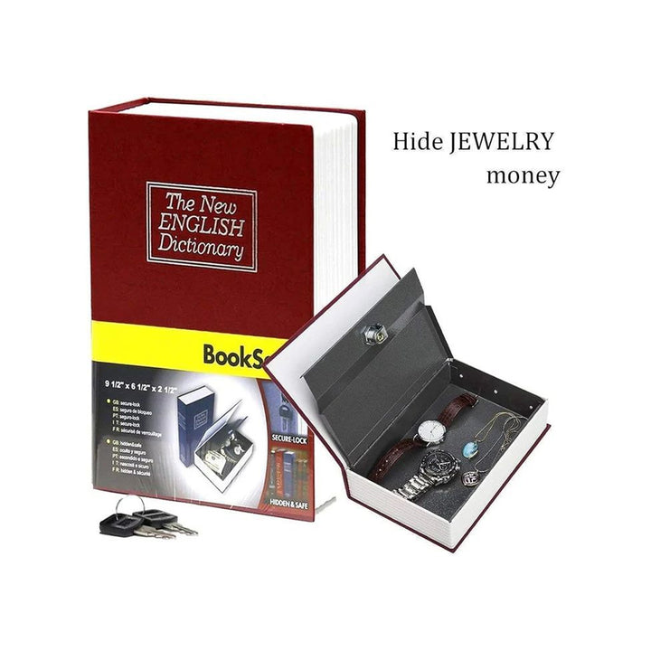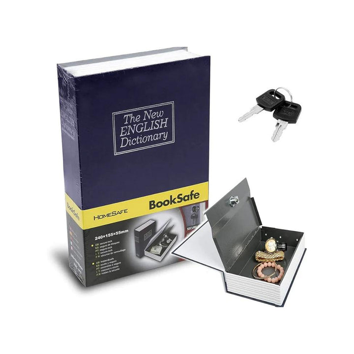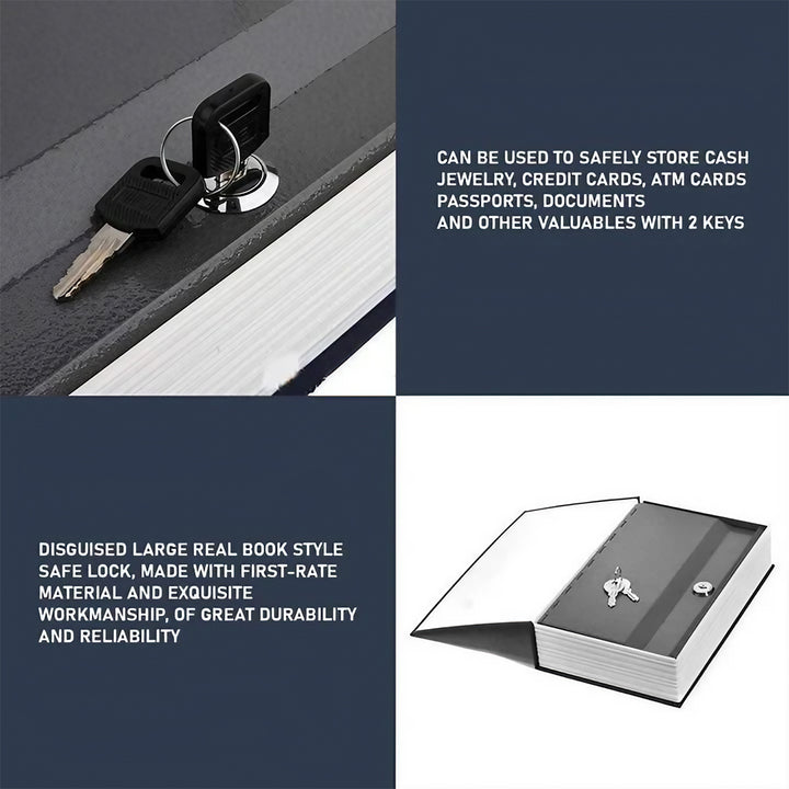 The safe looks like a real book and can be easily combined with books or other items on any shelf or table.