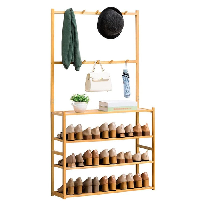 Multi-functional Shoe Rack Organizer with 4 Shelves and 10 Hooks