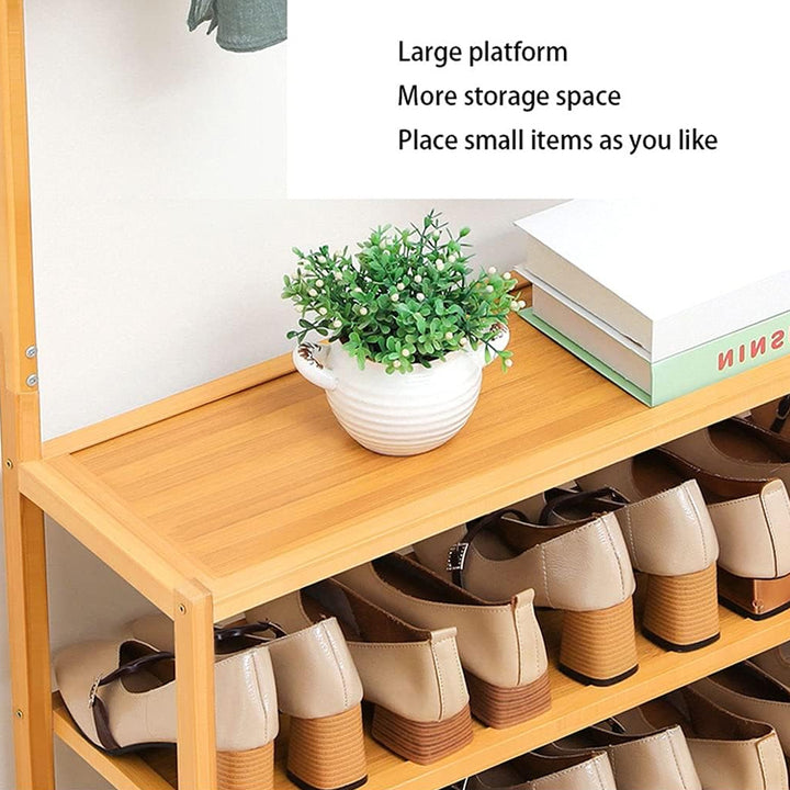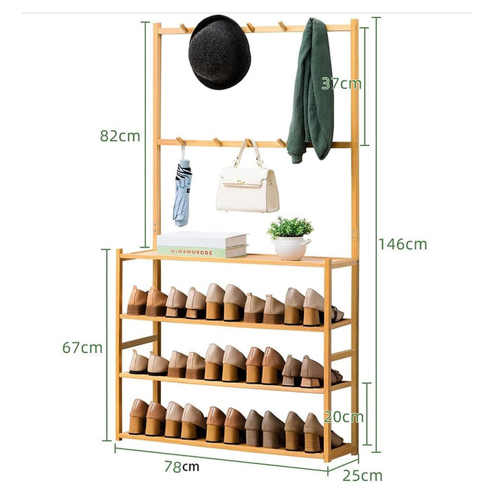 2-in-1 design, 4-shelf shoe rack and 10 hooks assembled to meet all your space-saving storage needs.