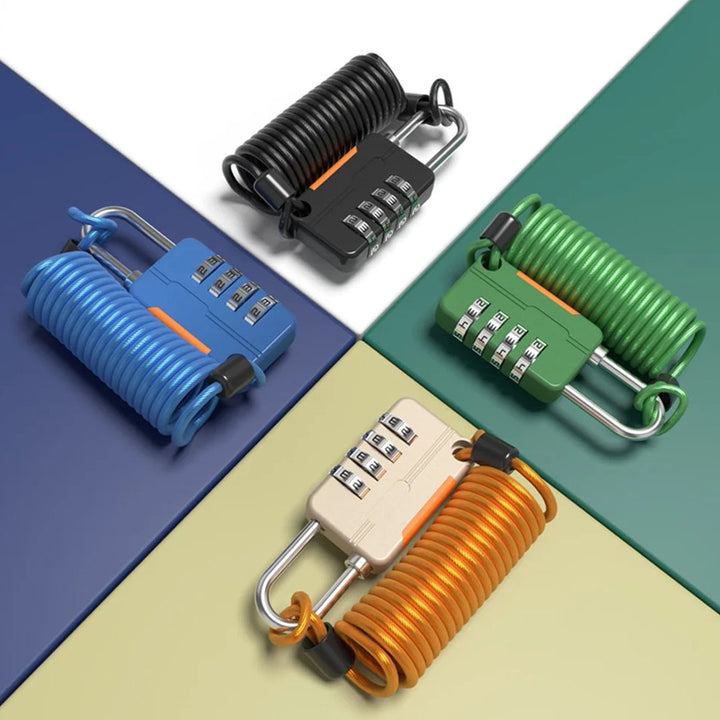 Multipurpose 4-digit Combination Lock with Strong Retractable Rope Perfect for Suitcases