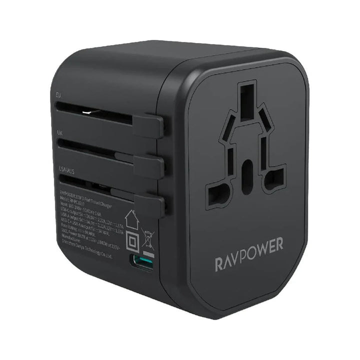 RAVPower RP-PC1033 20W Charger with Dual USB Ports, Type-C Port and Universal Power Adapter