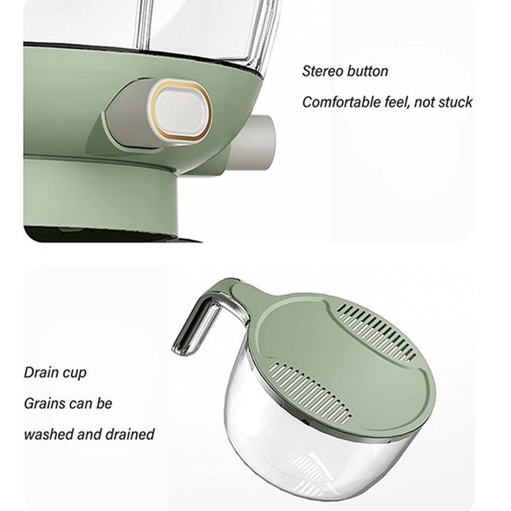 Equipped with a cup holder for easy grip and carrying of the cereal dispenser.