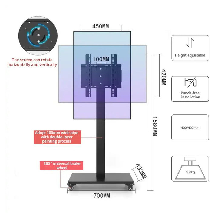 The screen positions can be switched between portrait and landscape freely, and the height can be adjusted as you wish.