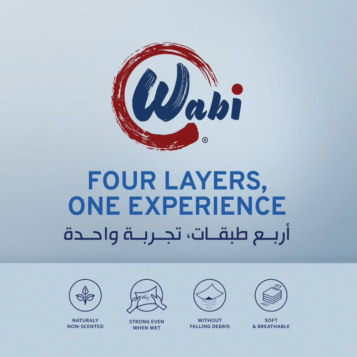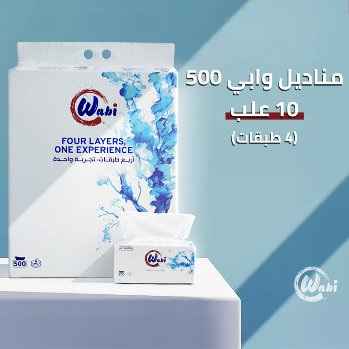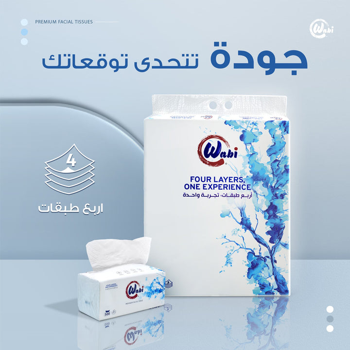 Experience the luxury of Wabi Tissues with four layers of unbeatable strength designed for every use. The economical pack contains 10 boxes, each offering 500 sheets made from 100% natural, fragrance-free pulp.