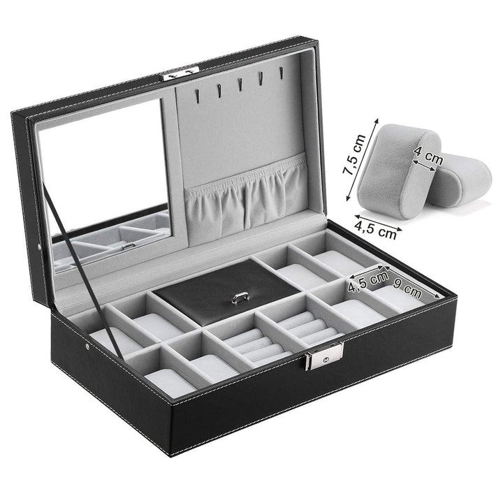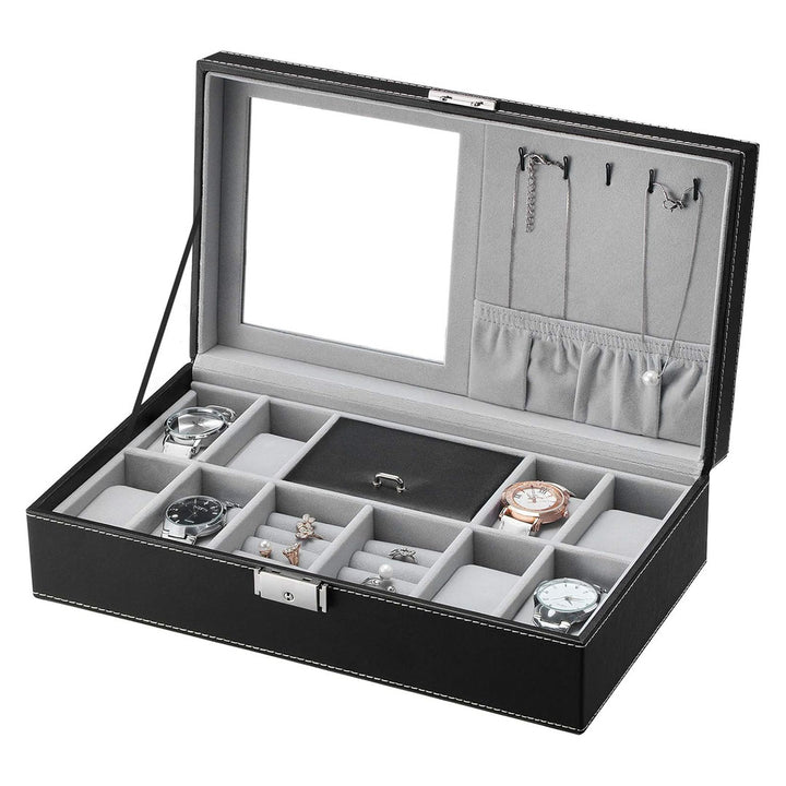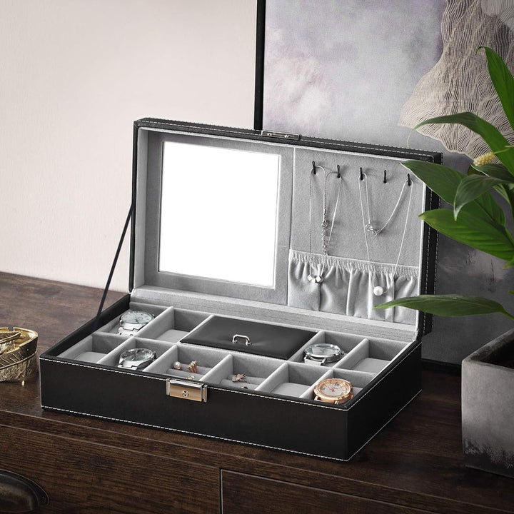 Watch and Accessories Organizer Box 10 Compartments, with Mirror and Side Hangers