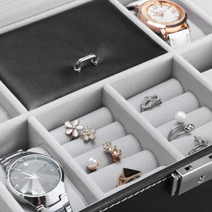 Watch and accessories organizer box made of high quality leather material, lightweight and durable.